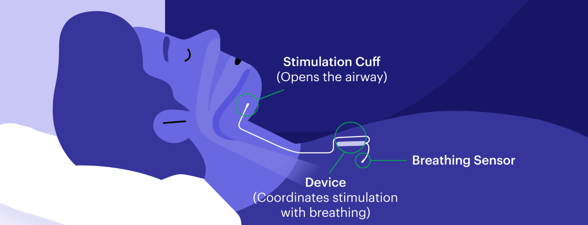 Inspire therapy is an alternative to CPAP that works inside your body while you sleep. When you’re ready for bed, simply click the remote to turn Inspire therapy on. While you sleep, Inspire therapy opens your airway, allowing you to breathe normally and sleep peacefully.